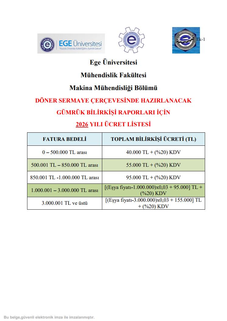 2025 Döner Sermaye Ücretleri (Rapor)
